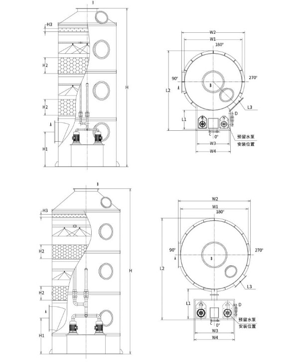 Typus 2: Split-typus aquae piscinae rores scrubber refertae (turris diameter: Φ2500mm-Φ3500mm)