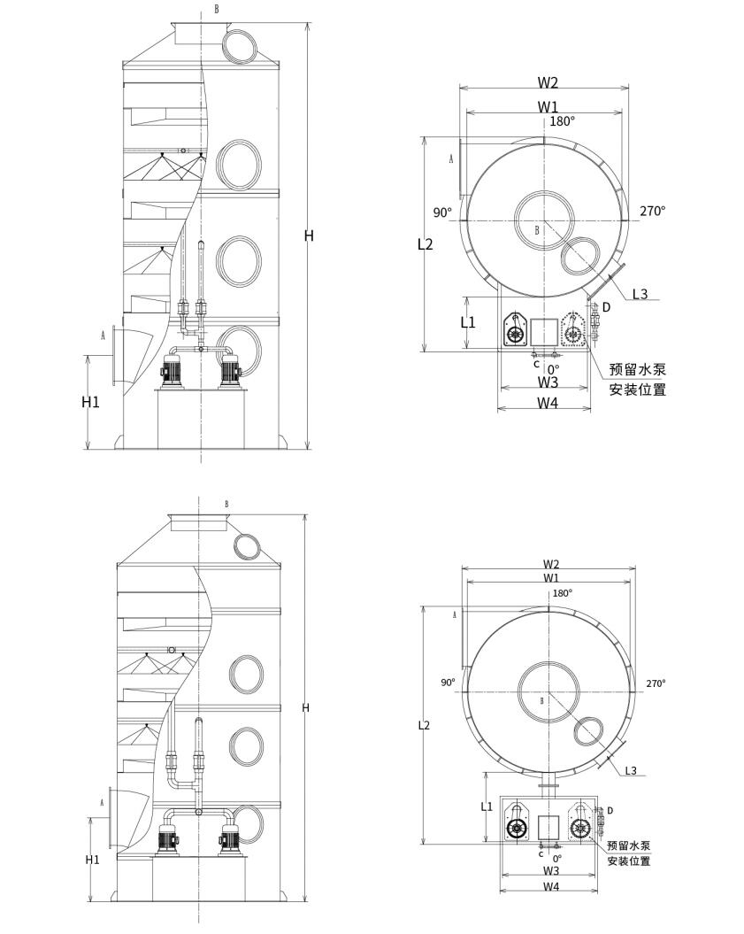Typus 2: Split-typus piscinae cycli aquae scrubber (turris diameter: Φ2500mm-Φ3500mm)